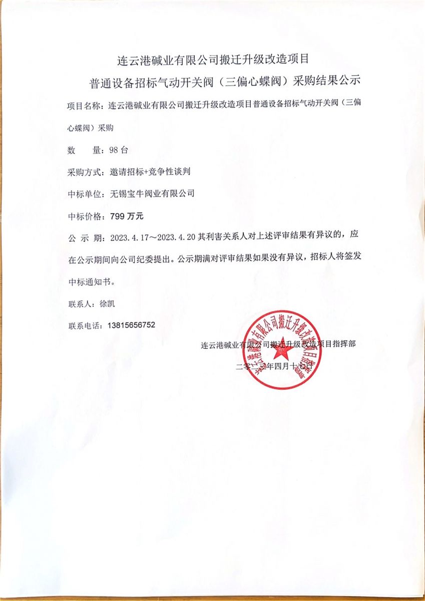 氣動(dòng)開關(guān)閥(三偏心蝶閥)采購(gòu)結(jié)果公示
